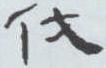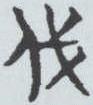 “伐”的本义是砍杀、殊灭。《说文》: “伐,击也。” 《诗·大雅·皇矣》 “是伐是肆,是绝是忽”就是描述的战伐场面。金文左边是“人” 的形状,右边是 “戈” (古兵器) ,用戈从人头上刺穿,表示砍头和杀伐。甲骨文1-3均象一手持大斧,霸气十足,主掌生杀大权的人形。值得一提的是甲骨文4-5,一个是用戈砍一头饰羊角的人形(头饰羊角是羌族人的特征,曾是中原统治者主要的敌人),另一个是戈上有一大眼睛长睫毛的女人形,这表明战伐的目的不仅要杀死敌方的士兵,也是为了夺取对方的女人,以繁衍自己的种族。“伐” 的字形经过秦石鼓文、小篆直至隶书(汉《曹全碑》 )一直是“左人右戈”结构。至今未变。