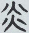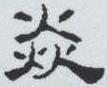 ” 。 虽然时间跨度上千年,且笔画不尽相同,但字形结构无别,均由上下两个“火”字组成,正是火苗向上窜腾之象。即使是已成为今文的隶书( 《赵宽碑》 )也未改变这一结构, 写作 “
