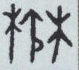 ” 。 左右二木表示树林。 中间一 “矛”字, 一般学者认为是声符, 笔者认为是形容林木挺拔, 破土而出, 直指青天的样子。 小篆写作 “