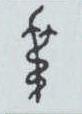 “弔” 同 “吊” 。此字有多种解释: 1. “人持弋(带绳的箭)说” ;2. “蟒蛇缠身说” ; 3. “同叔、弟说” ; 4. “吊唁死者说” 等。笔者认为,在字少义多的古代,一字多义,互相转借的现象比比皆是,识读中应联系前后字义区别对待。在表示 “吊唁” 义时,理解为 “蟒蛇缠身” 可通。甲骨文1-2和金文1-3的 “弔” 字写作 “