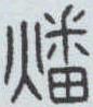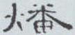 ” , 左边是“火”表示火烧; 右边是“番” ,表示田间野兽的足迹,本指古时“刀耕火种” 的焚田现象。《说文》: “燔,爇也。”