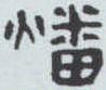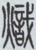 ” ,下边是一高举双手捧一器皿的人形,上边是标识的 “戠” ,似是胜利者高举刀枪旗帜欢呼状。此是场面红火的意思。 “说文古文”写作“