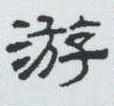 ” 字形相似。 在旗游下加一“子” (人形) , 表示两个意思: 一、 人在挥舞旗帜时可充分看到 “游” 的形状; 二、用 “子” (小儿)舞旗会意玩耍游戏。其他金文和 “说文古文”或加 “