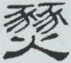” , 上边是两只猛兽 “豸” 的形状, 用二豸表示野兽多, 下边是火字,合起来正是山野大火,烧得动物乱窜的情景。或加 “攴” (读pū,手持杖形) 、“又” (手)形,会意兵火,或人为烧山。小篆将猛兽定为野猪“豕” (读shǐ) , 写作 “