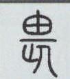 ” 。古人对“鬼”本来就很害怕, 拿着刀杖的 “鬼”就更可怕了。 《说文》称畏字是 “鬼头而虎爪” ,这是从金文5和 “说文古文” 的字形理解到的。小篆规范笔画的过程中将刀杖或爪变形。汉隶书( 《孔彪碑》 )将上边的鬼头(甶, 读fú)写作“田” , 下边的虎爪写作 “