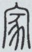 ” 。 上边是表示房屋的 “宀” (读mián) , 里边是非常形象的豭(读jiā,公猪)形。《说文》将 “豭” 省去 “叚”用 “豕”作声符,不确。此字有两层意思: 一、“豭”是公猪,有较强的繁殖能力,借此表示成家是为了繁衍族群,这是 “家” 的本义; 二、“家”字生动真实地反映了古代人类与家畜同居的情景。 “说文古文” 、小篆写作“