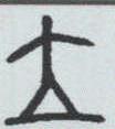 ” , 上边是四肢展开的正面人形, 即“大”字, 下边一横表示地面,会意人站在地上,字形字义十分明确。隶书(汉帛书、《华山庙碑》等)写作“