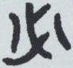 ” , 象一柄无刃有鑚的杆柄, 是象形字。 小篆写作 “
