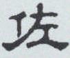” (𠂇) , 用一只左手表示。 金文、 石鼓文、 小篆2多是“手”下加一“工”字,表示佐助右手做工作。金文中也有加 “口”或“言”者,从“言”表示用语言帮助; 从“口”者为“右”字,“右” 同“佑” ,也是帮助、辅佑的意思(详见“右”释)。隶书(汉《白石神君碑》、《景君碑》 )以特有的波磔笔画将“左(佐)”从古文字行列中分化出来,成为今文。注: 古文字中未见 “佐”字,属后起形声字。