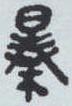 “暴” 本义是晒。小篆象双手捧出米在日光下晒。后加 “日” 部成“曝” ,是暴的后起形声字。《论衡·解除》: “暴谷于庭,鸡雀啄之。”小篆的 “暴”有两个写法: 表示晒义的 “暴” (读pù)下边是 “米” 字; 表示暴躁的“暴” (读bào)是将“米”换成“本” 。此字在隶变时与暴溶为同一字,仍作 “暴” ,表示粗暴的暴字甲骨文、“说文古文” 写作 “虣” (详见“虣”字释文)和“𣋴” (
