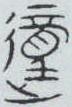 ” 。 从上至下由表示童工的“童” (童,儿童奴隶) 、表示口袋的 “東” (橐)和表示脚趾的 “趾”(止, 足)组成, 会意劳动, 动作。 “说文古文” 、楚简、楚帛书写作“