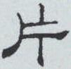 “爿” 和 “片” 最初是同一字,《说文》: “片,判木也。从半木。”都是树木纵向锯开的形状,后分化成“爿、片、牀”三个字。“爿”本是“牀(床)” 的初文。 甲骨文写作“
